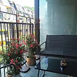 Boligen er udstyret med en balkon, en sofa og et skrivebord samt et fuldt udstyret køkken. Et badeværelse består af separat toilet og et badekar.